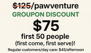 At Paw-Venture, every day is an adventure for your dog! From lakeside fun and scenic trail walks to social play with friendly pups, we provide a safe, stimulating, and joyful environment for your furry friend. Our luxury doggie daycare focuses on active play, pack-friendly socialization, and personalized attention, ensuring your dog stays happy, healthy, and energized. Whether your pup loves outdoor adventures, splash-filled playtime, or simply making new friends, Paw-Venture is the ultimate destination for dog fun and enrichment.